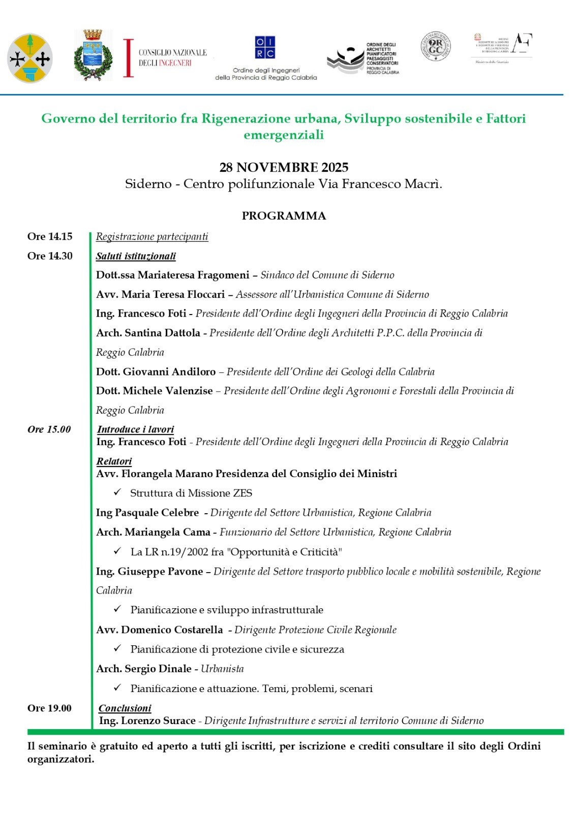 Venerdì 28 Novembre 2025 dalle ore 14:15 IN PRESENZA presso il Centro polifunzionale di Siderno (RC) in via Francesco Macrì.