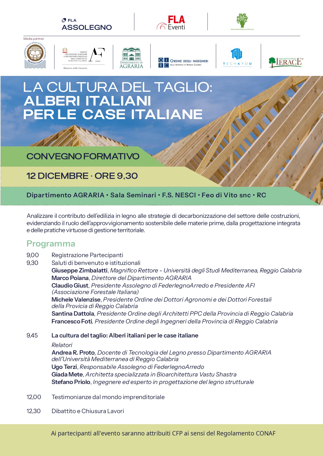 Venerdì 12 Dicembre 2025 dalle ore 9:30 IN PRESENZA presso l’Aula Seminari “Francesco Saverio Nesci” Dipartimento di Agraria dell’Università degli Studi Mediterranea di Reggio Calabria.