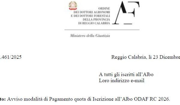 Tag: News dell’Ordine 23 Dic 2025 Avviso modalità di pagamento quota 2026 il Consiglio dell’Ordine, nella seduta del 12 Novembre 2025, ha Deliberato di mantenere invariate per… Leggi di più